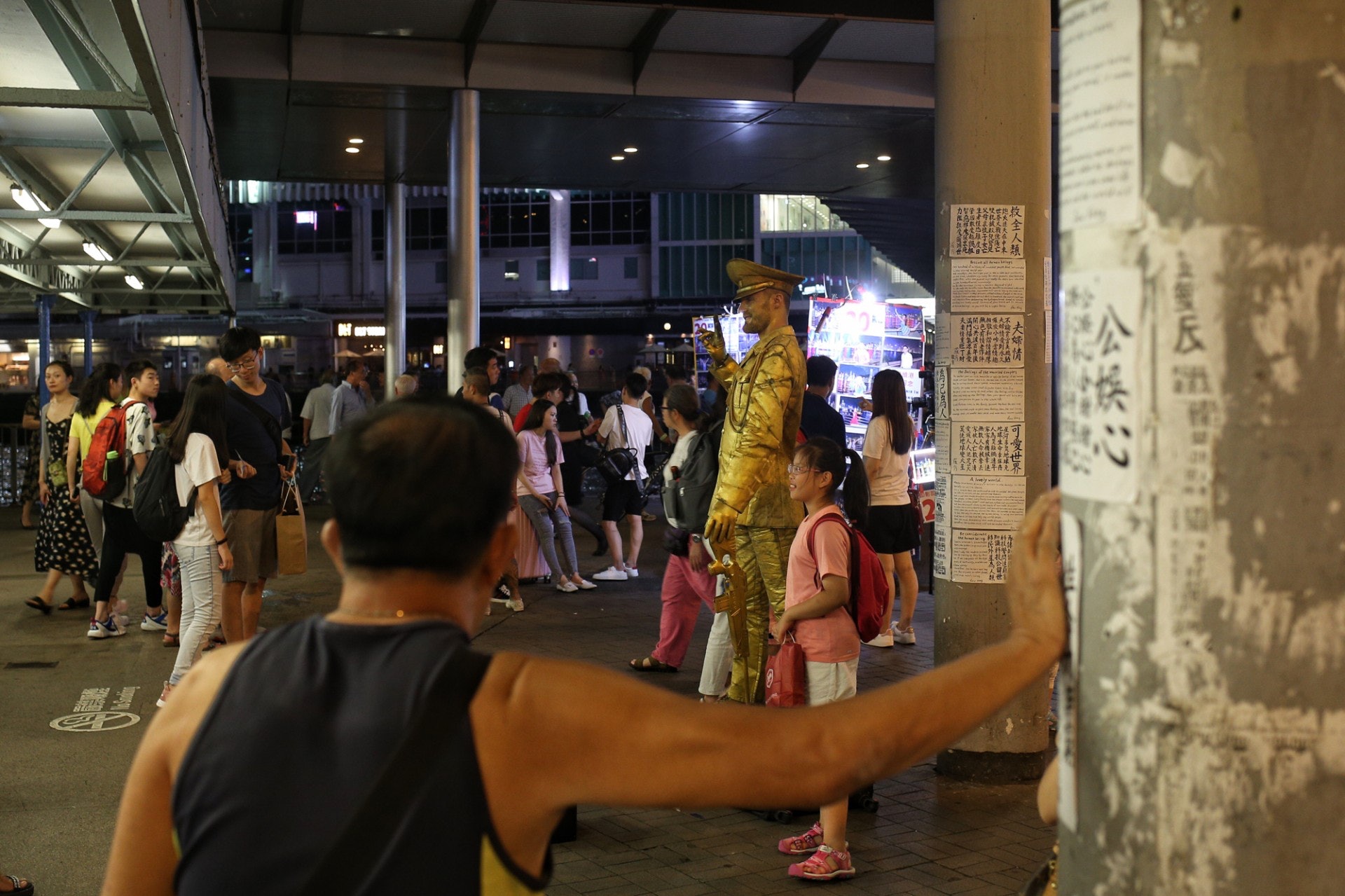 7 S6 T2 J9 ~9 r% R0 O) Q- }上周旺角行人專用區被「殺街」後,部分當區表演者,將舞台轉移至尖沙咀天星碼頭外。(李澤彤攝)