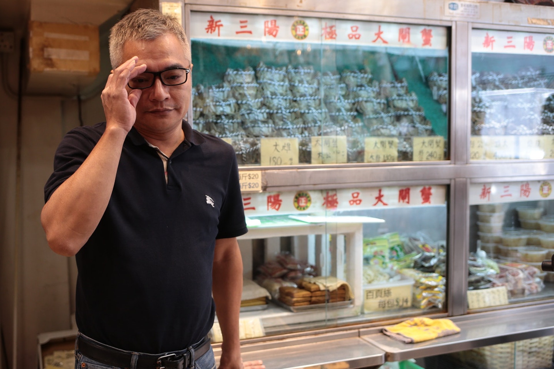 7 P# d3 d/ A( Z' `& I% ^www.tvboxnow.com有商戶去年曾抱怨,買了一批大閘蟹到舖頭,卻未能售賣。(羅君豪攝)