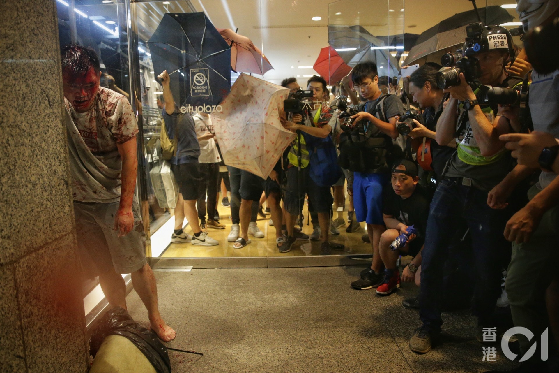 太古城中心更發生流血事件。傍晚原有示威者築起人鏈和唱歌以表達訴求,近6時半有防暴警察一度衝入太古城追捕聚集人群。惟警方收隊後,1名穿灰衣男子疑因政見問題與人爭執,持刀襲擊現場人士,有傷者背部中多刀;而太古城西區議員趙家賢疑在混亂間被咬甩左耳。其中1名傷者梁小姐稱施襲男子操普通話,因政見不合與她的家人發生口角,期間拿刀斬人,她亦中拳受傷。公仔箱論壇( u3 m2 O4 W% S2 n: C) c  m; X