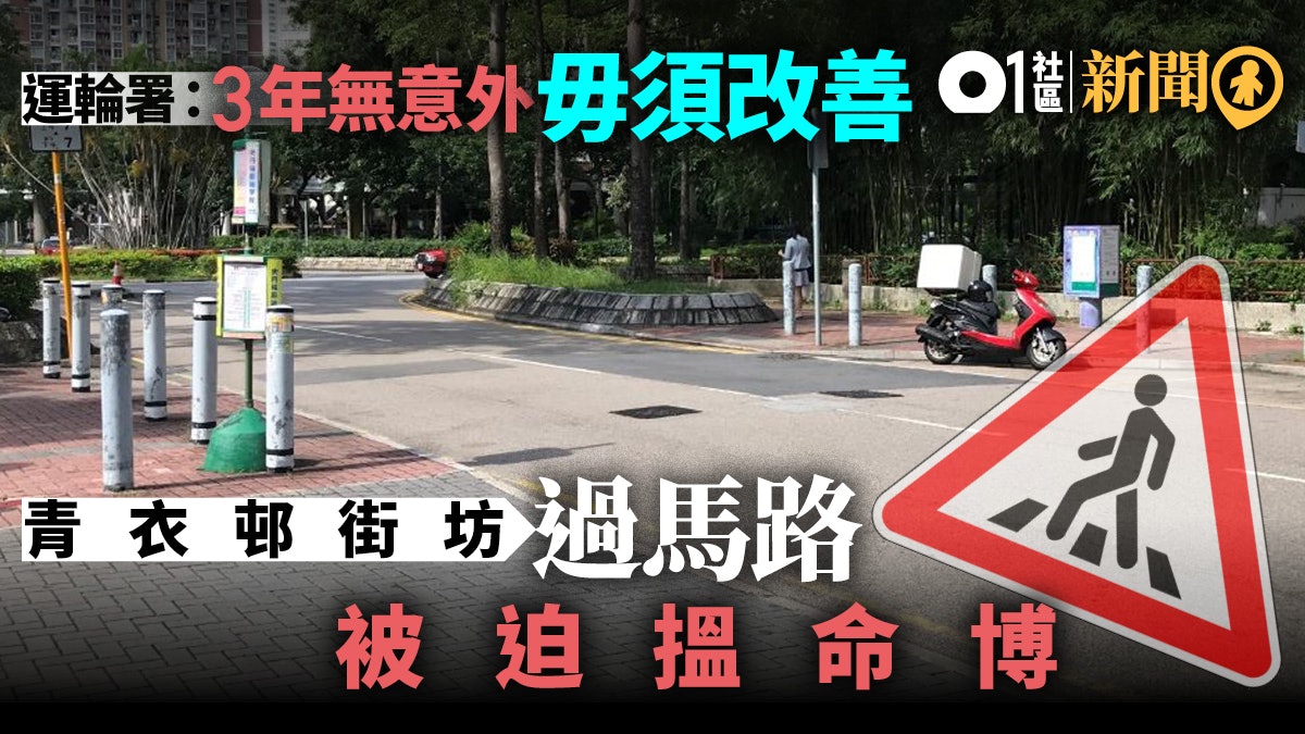 青衣青綠街近迴旋處、青衣邨的行人過路處,現時並無任何過路設施,沒有交通燈,沒有斑馬線,連「望左」、「望右」的路面標記亦欠奉。「過路處前少少就係迴旋處,小巴同的士轉嘅時候車速會好快。」公民黨青衣地區發展主任冼豪輝指正因如此,街坊過路時常險象橫生。