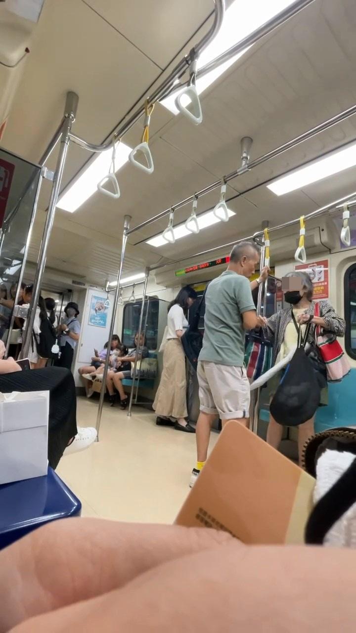 台灣網絡瘋傳影片,指台灣捷運有1名阿婆要求坐在關愛座、穿裙子的「女子」讓座,並用袋擊打「女子」,「女子」不甘受辱,一腳把阿婆踢到對面座位。(Threads@queen7_910). k9 U6 F2 P$ f( A, g) x