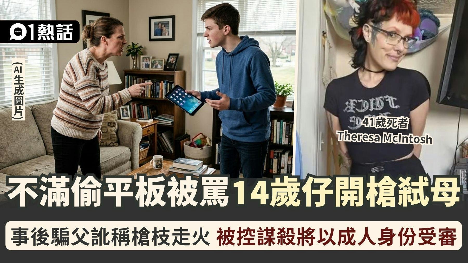 美國發生逆子弒母兇案!當地一名14歲少年因被母親揭發偷取對方客戶的平板電腦,之後雙方又為平板的密碼爆發激烈口角,加上曾聽到對方向父親斥其「弱智」、「小偷」,種種積怨下憤而持槍,向母親後腦開槍,導致對方身亡,事後更向父親訛稱「槍枝走火了」。