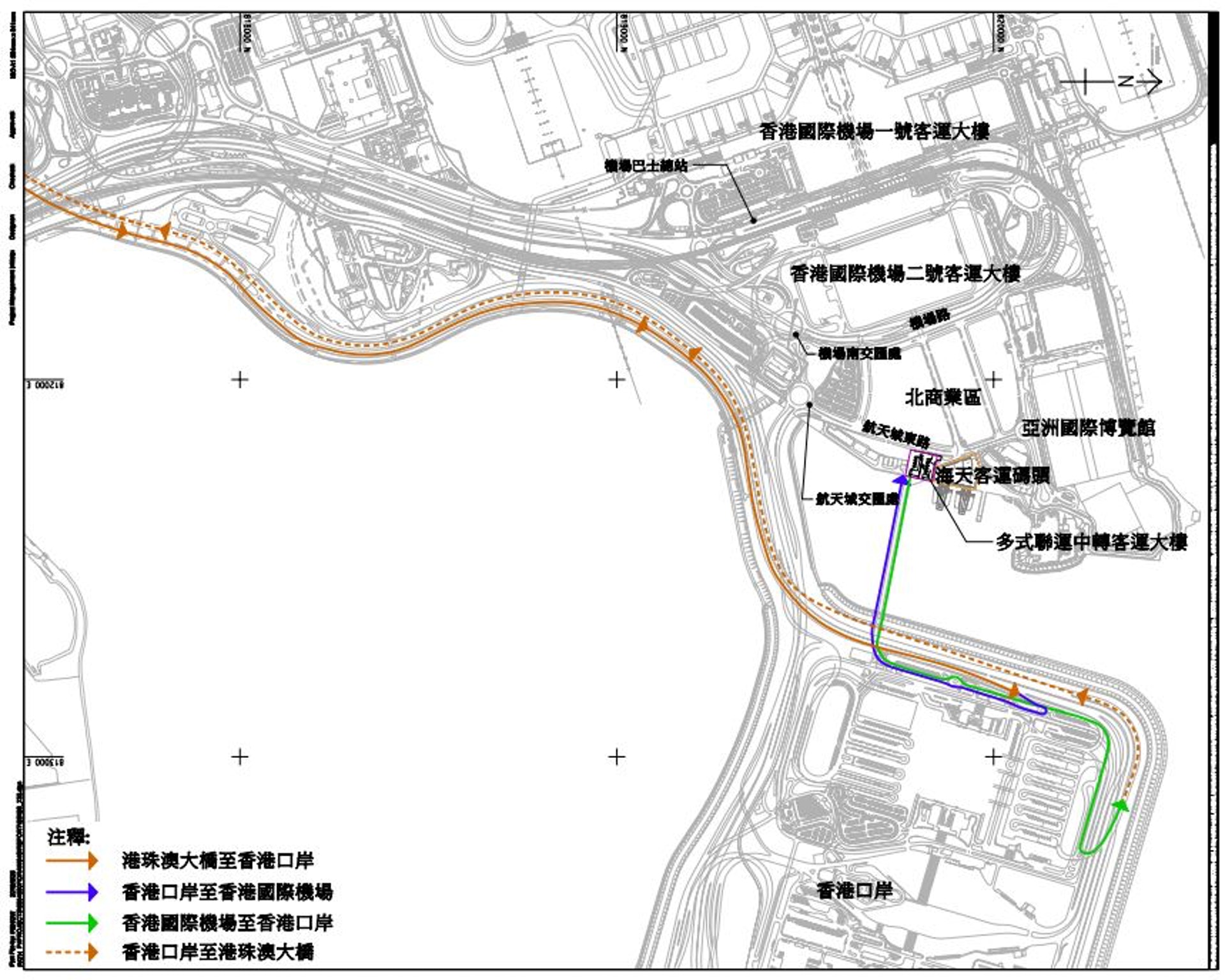 & O5 @3 V* v$ t8 Y, d5 dtvboxnow.com機管局擬於多式聯運中轉客運大樓與香港口岸人工島之間興建一條封閉行車橋,料2022年竣工。(環評報告)