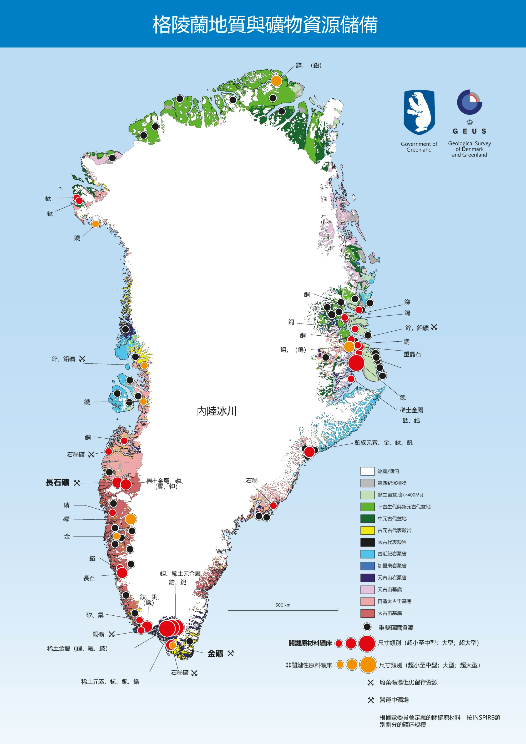圖為丹麥和格陵蘭地質調查局2026年1月9日在網站上公布的資源地圖,其中可見具體資源與礦場分布。(丹麥和格陵蘭地質調查局)tvboxnow.com* t' I8 C8 P' e