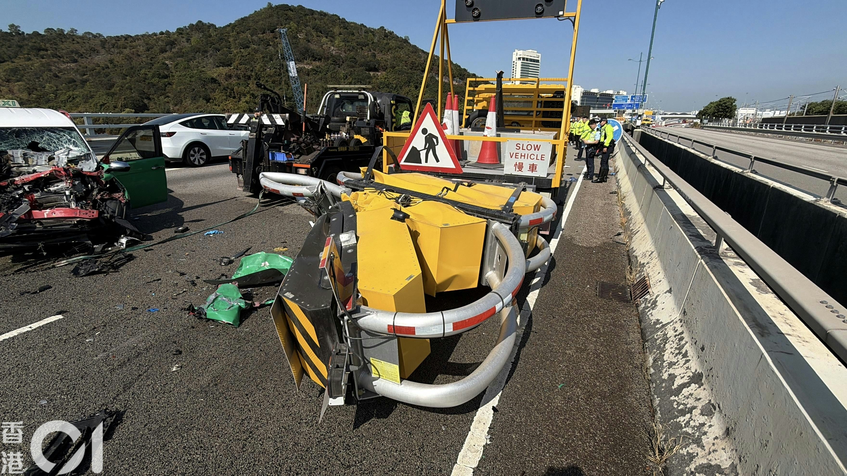 機場管理局回覆《香港01》查詢,證實涉事箭嘴車為機管局承辦商的工程車,指當時工程車正停泊於有關路段,準備進行園藝工程。在距離事發地點前約300米,道路上的信息顯示屏已清楚顯示信息,提醒駕駛者前方相關的行車線將封閉,需要轉用其餘行車線。事發前承辦商工人已在相關路段擺放指示牌,暫時封閉及分隔部分行車線,工程車亦已亮起指示燈,提醒駕駛者使用其他行車線。警方正調查事件起因。