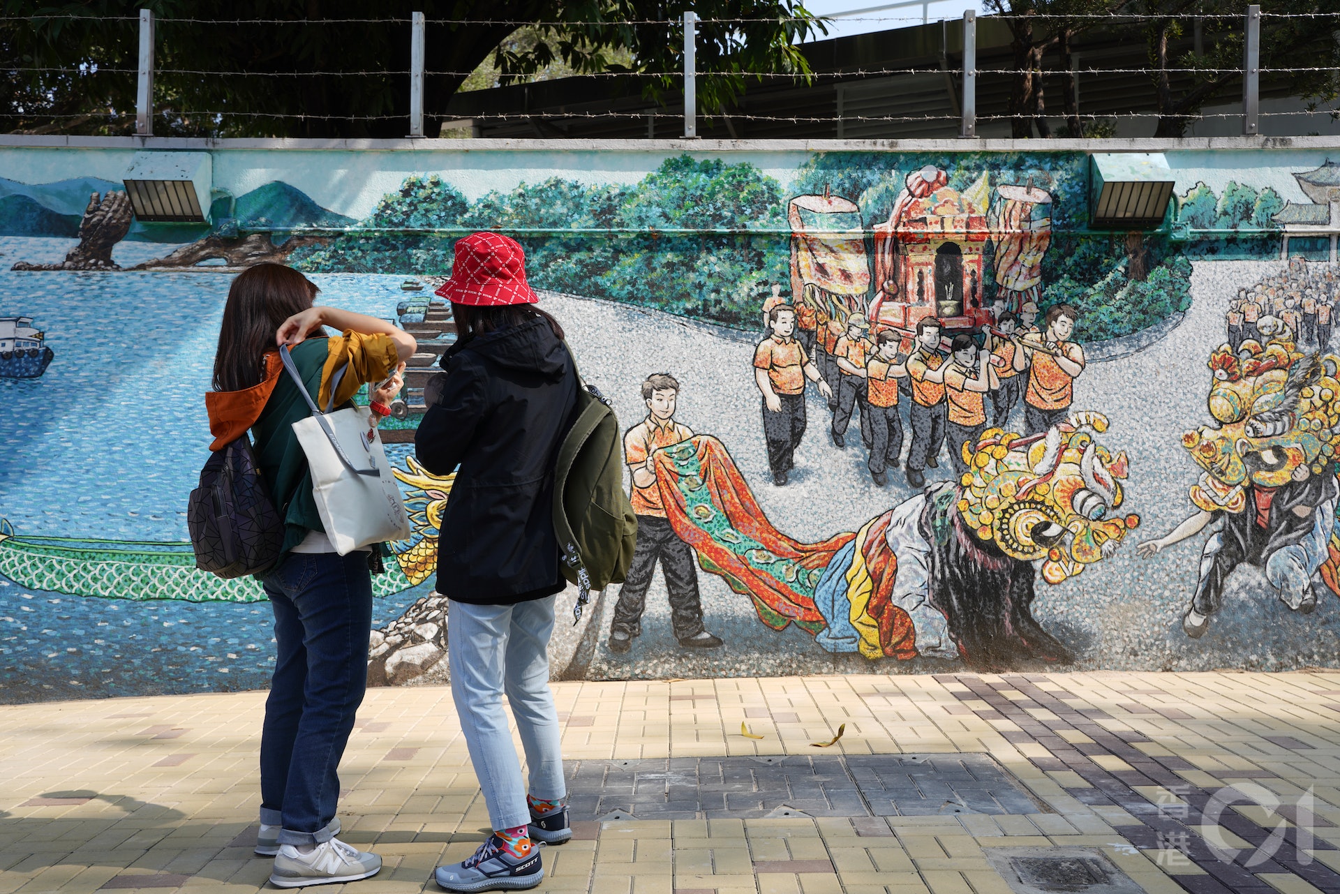 沙頭角禁區第二階段第一期開放1月1日實施,首批旅行團團友早上進入區內開放範圍遊覽,不少人找獨有地標打卡。(黃浩謙攝)