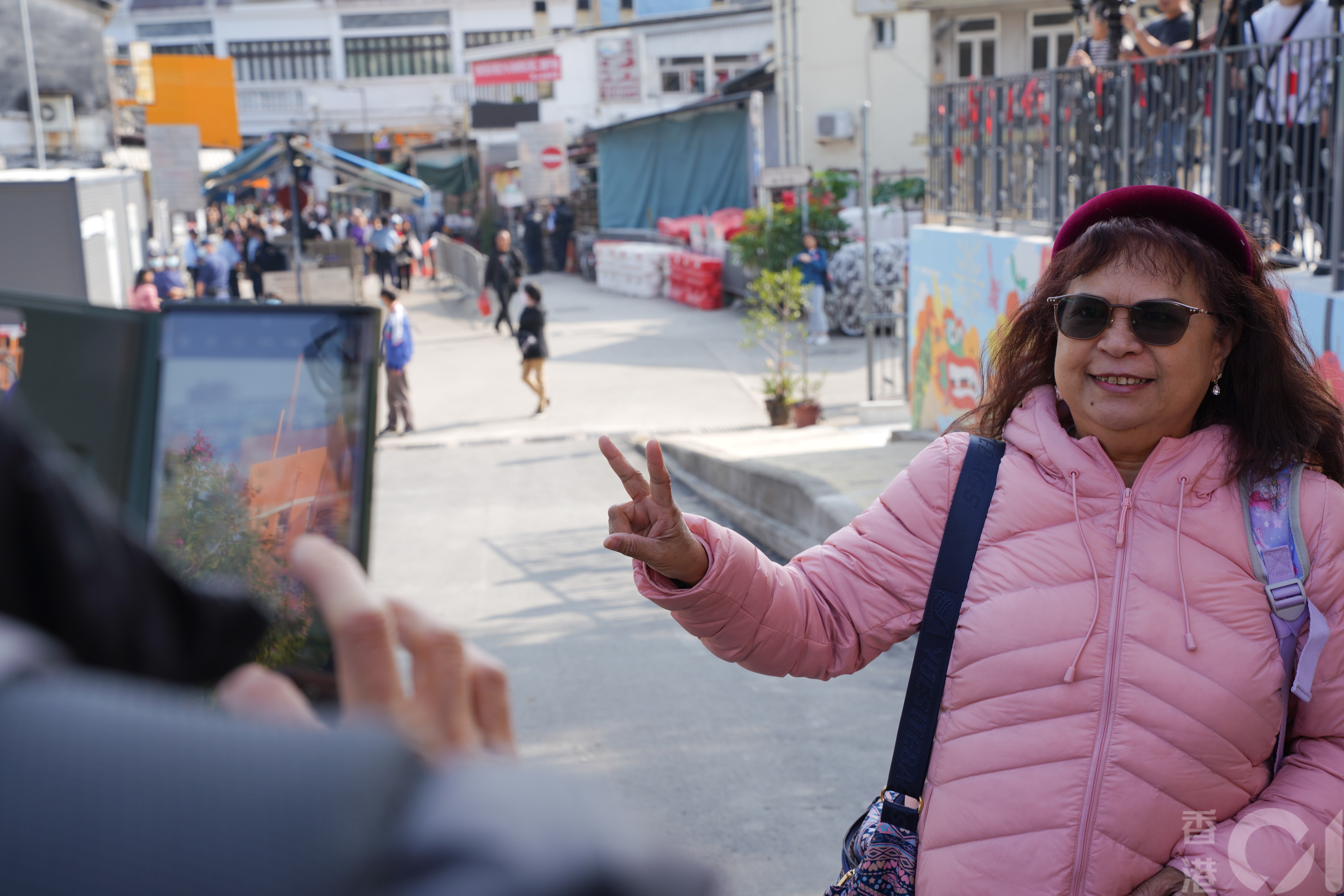 / N+ u, Q" h. y! ]沙頭角禁區第二階段第一期開放1月1日實施,首批旅行團團友早上到來遊覽,不少人連忙打卡影相。(黃浩謙攝)