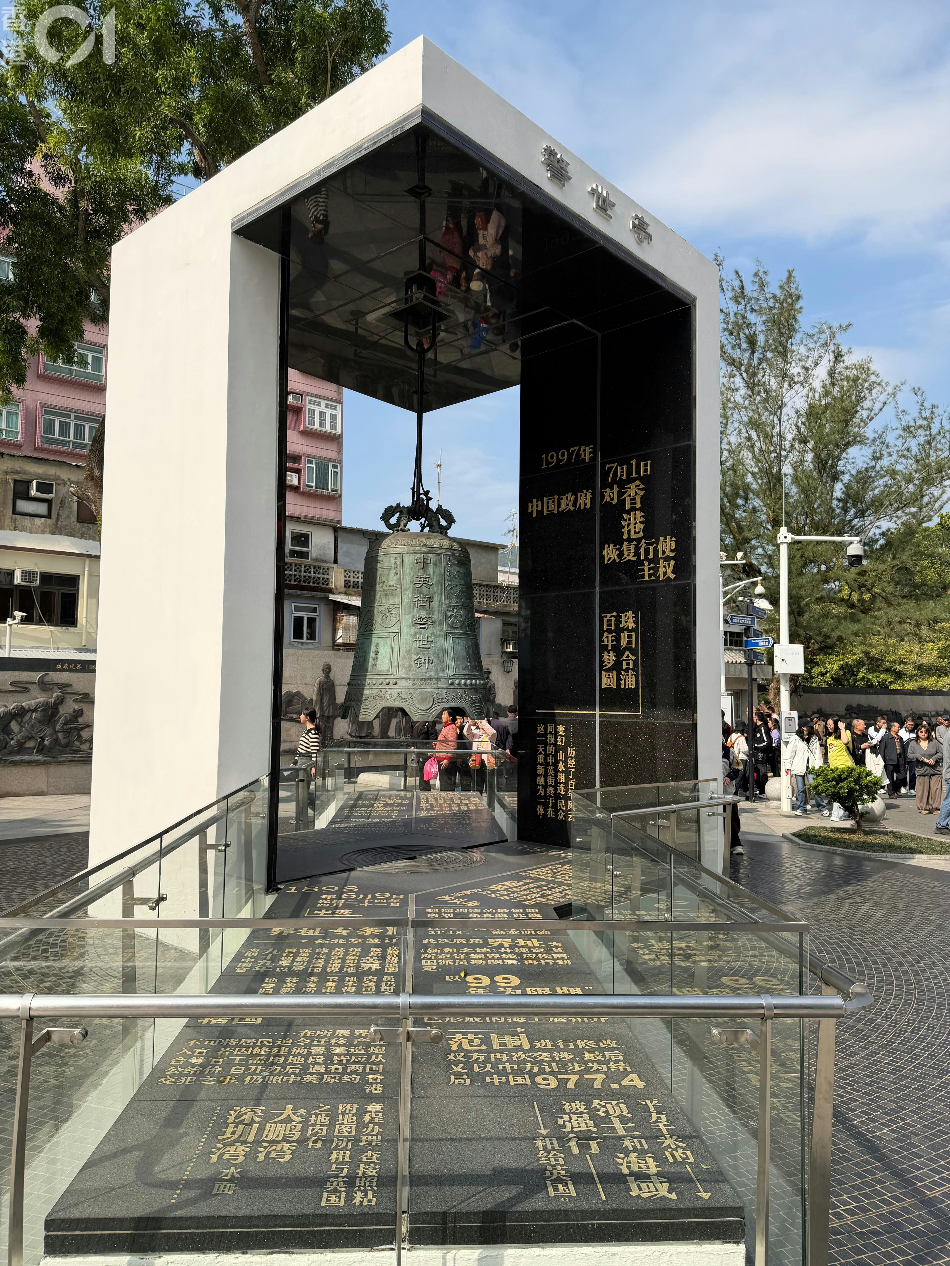 博物館廣場的「中英街警世鐘」,每年3月18日舉行鳴鐘儀式。(香港01)