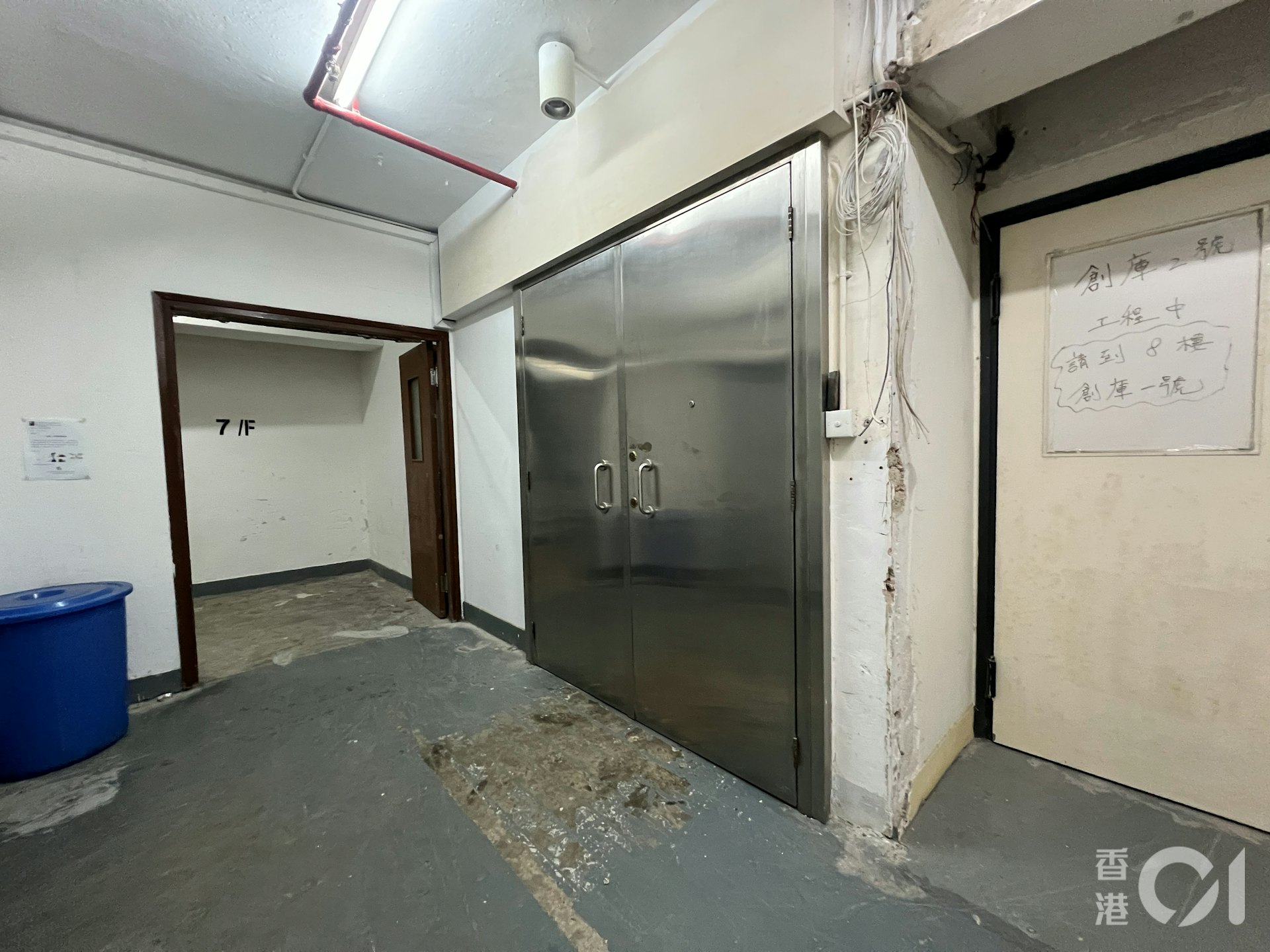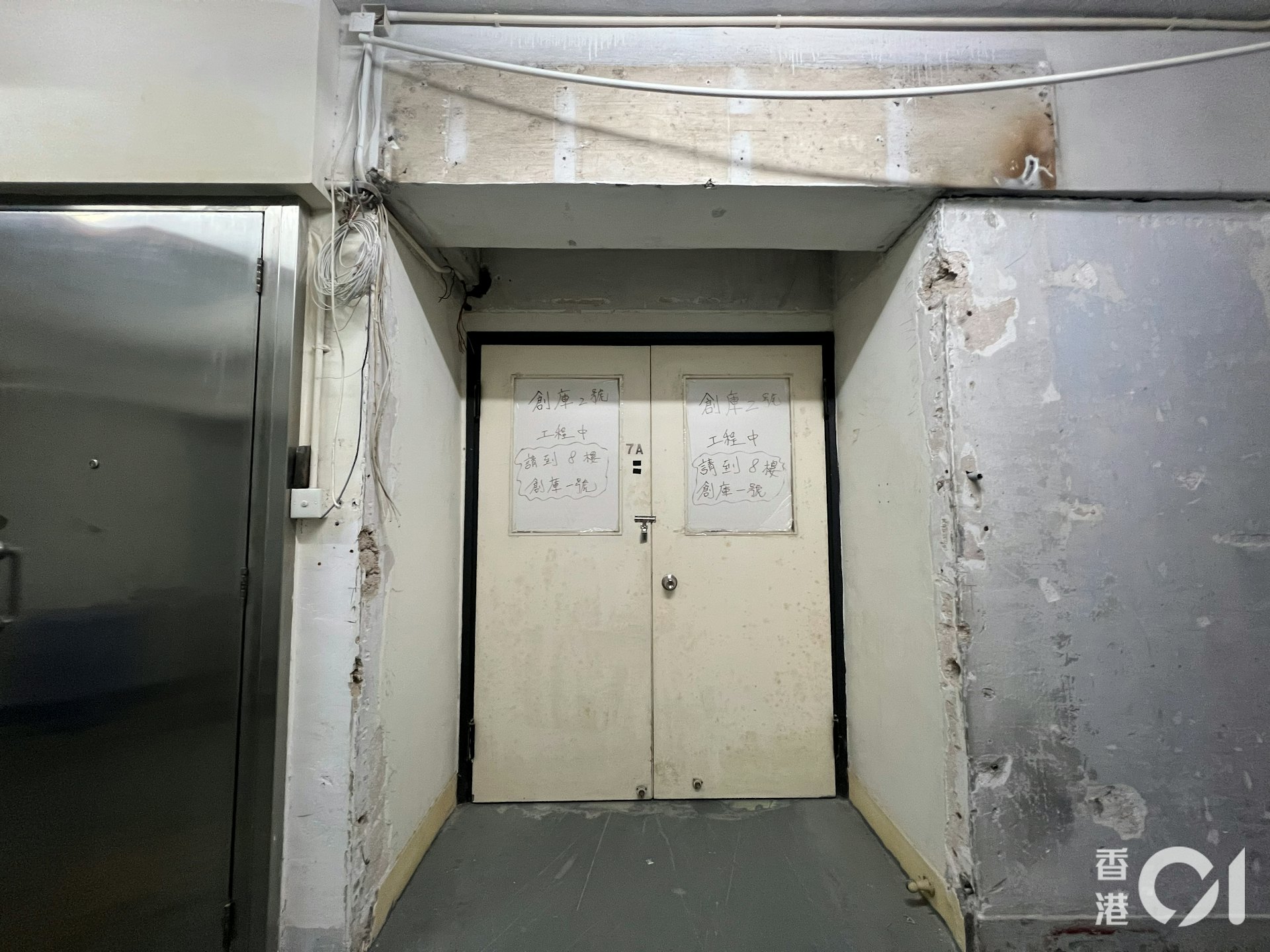 & P: B8 ]6 m! t4 i0 L U6 ftvboxnow.com2025年11月,「迷你倉花」單位門外寫上「創庫二號工程中」。(陳萃屏攝)