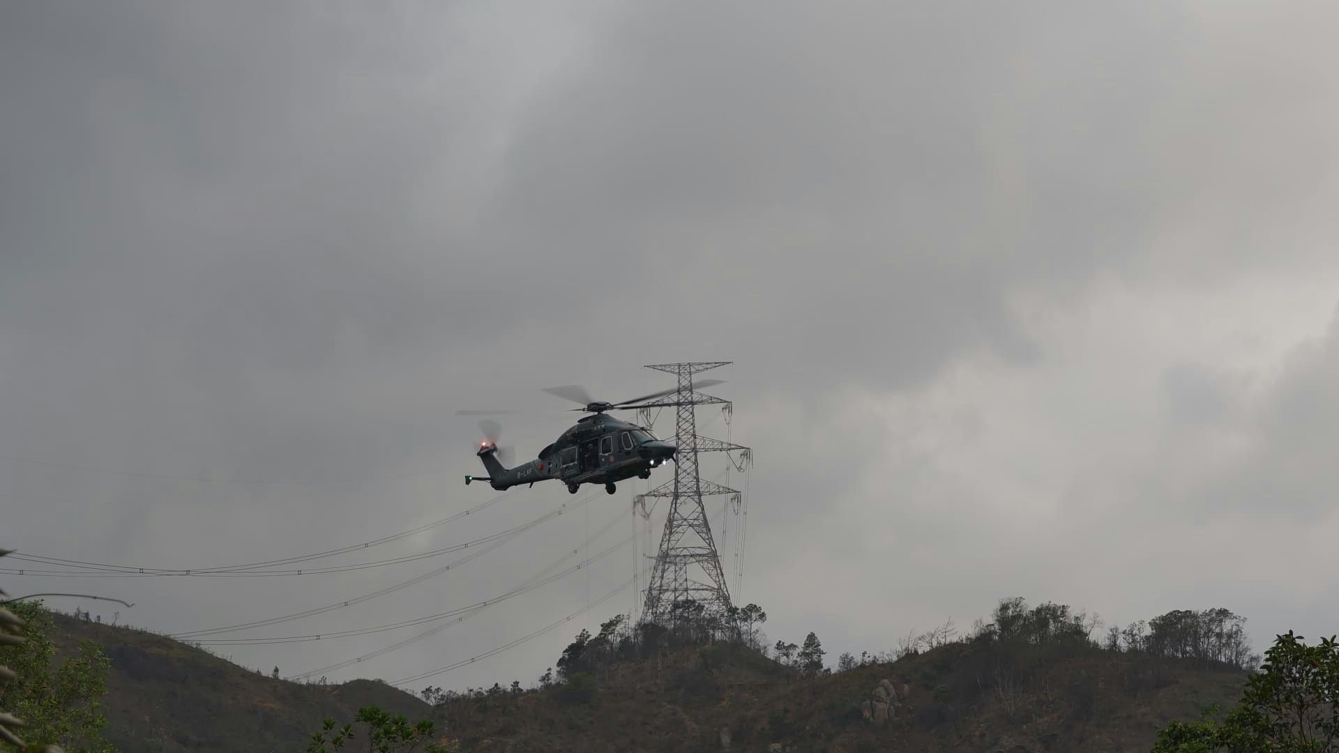 直升機在大欖涌一帶上空搜索。