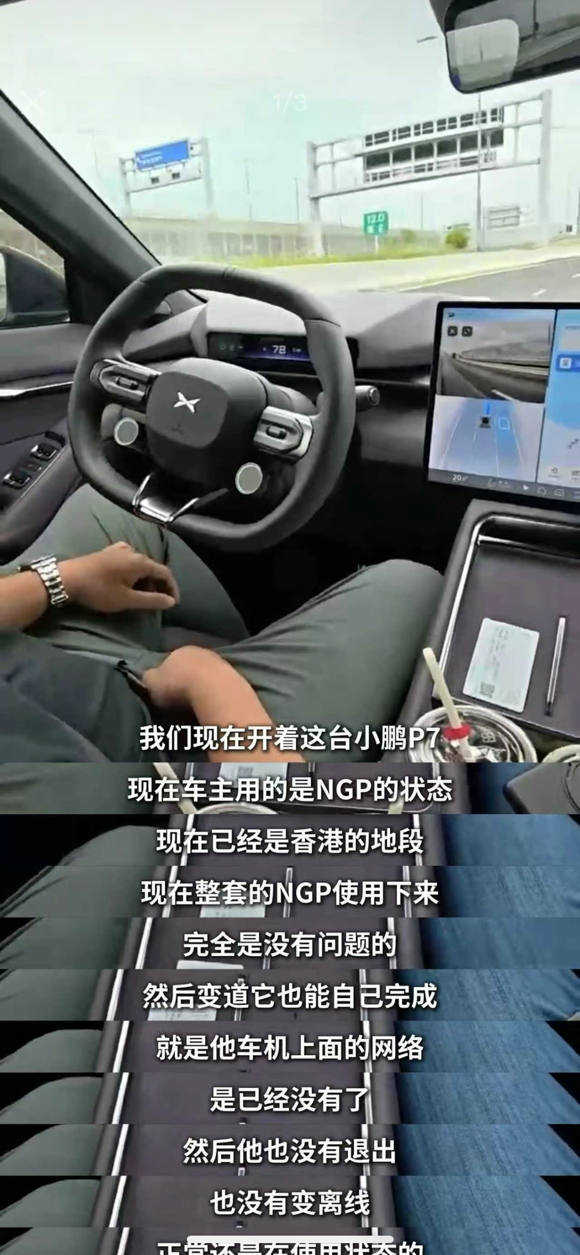 / b2 @4 d" K' f; e# i+ F公仔箱論壇小紅書上流傳影片,一名經粵車南下於23日自駕來港的内地「小鵬P7」車主,在港珠澳大橋駕駛時使用車輛的智能駕駛系統,期間曾單手控制軚盤,更一度雙手離軚。從畫面中的地圖可見,車輛正於赤鱲角路駛向港珠澳大橋香港口岸。