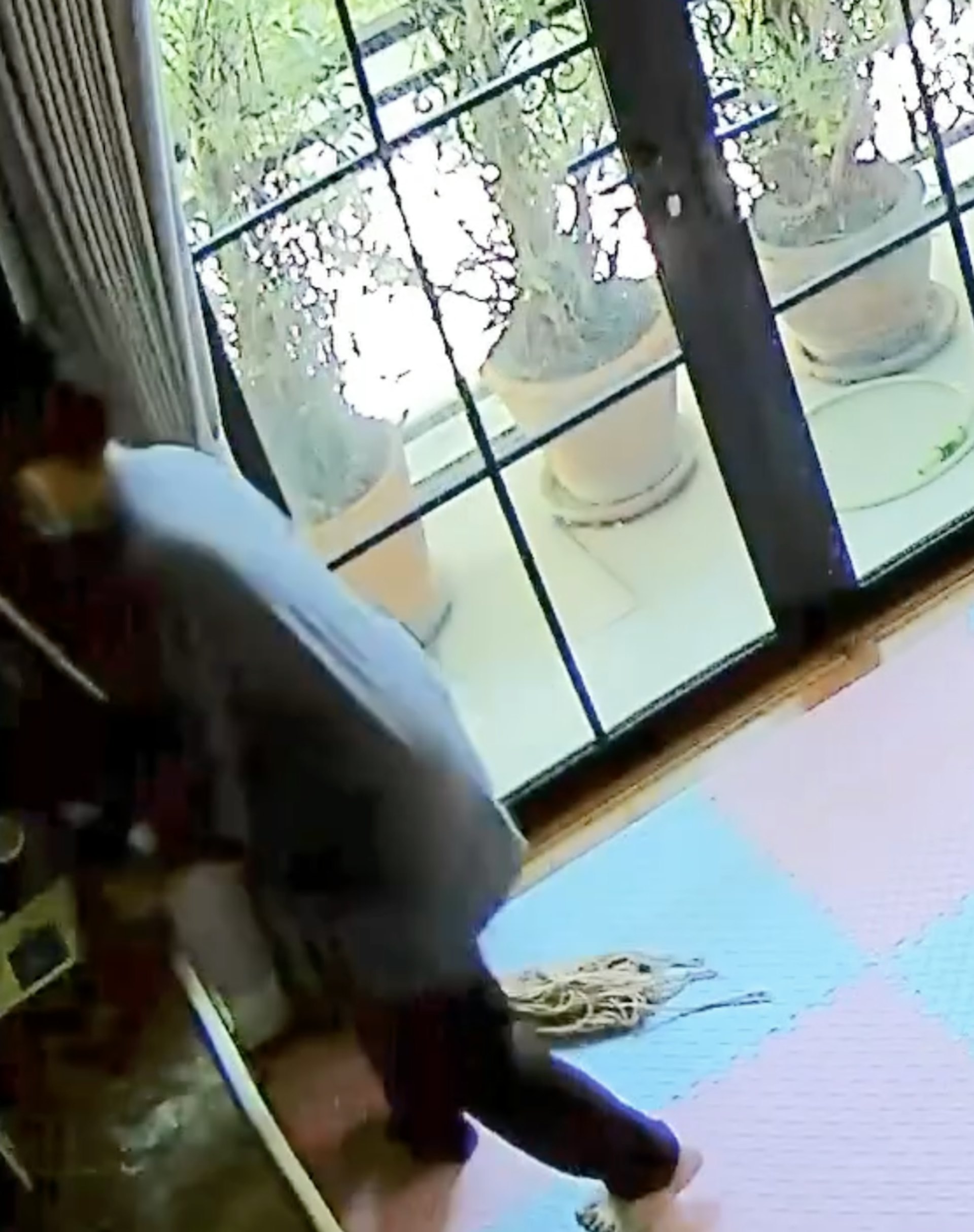 9 F& O4 [) q, W1 b$ W公仔箱論壇隔天調閱家中監視器發現,這名臨時清潔工曾將消毒水倒入孩子的奶瓶當中,之後再把奶瓶放回原位,很顯然是刻意為之。此外,這名幫傭還偷偷躲在屋外的儲藏室,發現大家都已經離開家後,就立刻從儲藏室出來,試圖闖入家中但並未成功。