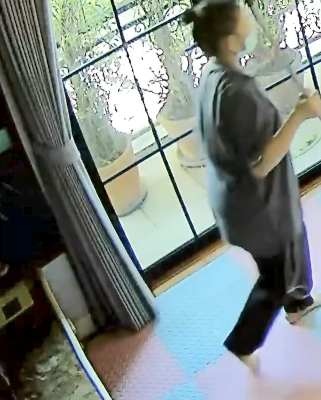 " M) G* M2 ^0 q, u. `0 w閉路電視拍到家傭根本沒有清潔,只是在家中四圍走拍攝財物。(facebook「Yokey R. 」)