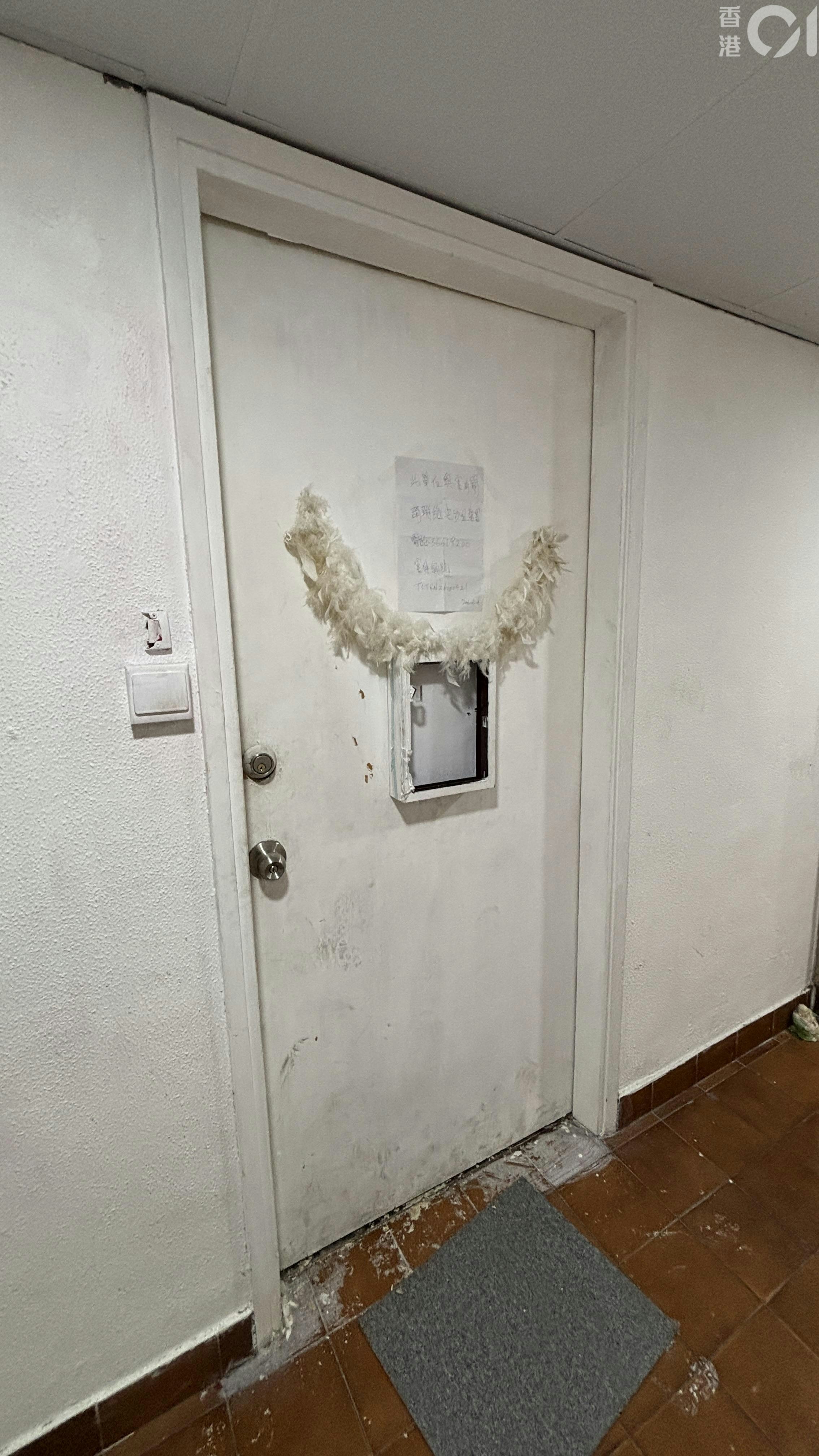 涉案單位門口張貼告示,尖沙咀警署處理該宗案件。(羅日昇攝) |