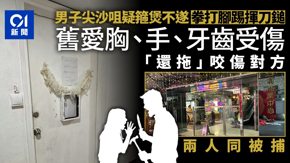 & d; ?& U" p. n4 s6 `+ X% z消息稱,兩人為前度情侶關係,事發時疑莊男要求復合,惟「箍煲」不遂,拳打腳踢及言語恐嚇盧女,又手持35厘米長利刀指嚇,更用鎚仔扑傷盧女嘴巴;盧女不甘示弱,動手「還拖」及咬傷對方。警方調查後,以涉嫌「襲擊致造成身體傷害」、「刑事恐嚇」及「未能出示身份證明文件」拘捕莊男;盧女則涉「普通襲擊」被捕,兩人均被扣查。油尖警區刑事調查隊第2隊已接手跟進。