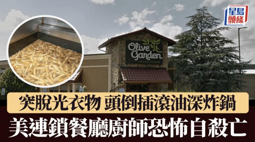 美國賓夕法尼亞州一間連鎖餐廳Olive Garden發生駭人聽聞的自殺慘劇。一名廚師於上周五下午在餐廳廚房內,突然脫光全身衣物,隨後竟當眾將頭部插進裝滿滾油的深炸鍋中。儘管多名同事及顧客曾上前阻止,惟最終未能挽救其性命。警方初步調查指事件涉及自殺,案件詳情仍在調查中。