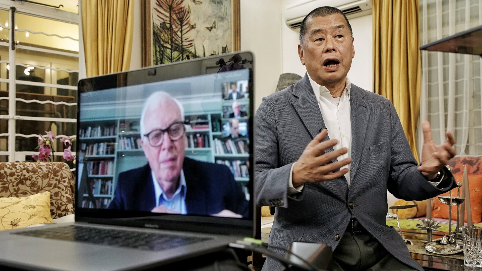 1 M b3 |- K/ O3 O7 Dwww.tvboxnow.com黎智英在《國安法》生效後,仍在網上主持節目,圖為他在2020年11月13日在直播節目與前港督彭定康對談。www.tvboxnow.com u7 h4 u5 d1 ^1 m/ f1 r& ?