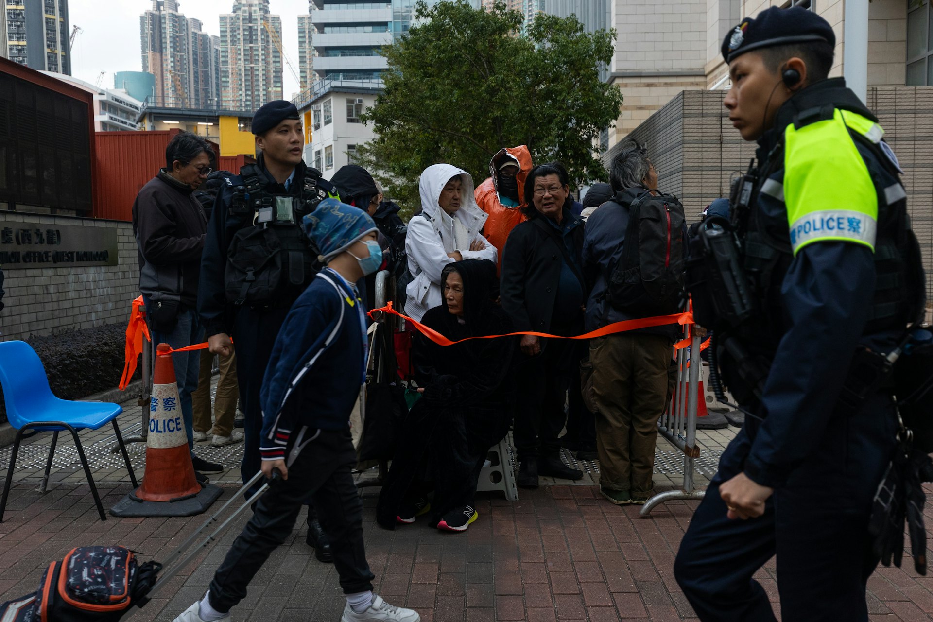 5 m2 }0 V9 S9 w; H) R7 f黎智英勾結外國勢力案2月9日判刑,早上西九龍裁判法院大樓外保安明顯加強,停泊多輛警車,大批警員在附近戒備。(梁鵬威攝)www.tvboxnow.com. _7 @6 O0 ~- K4 n