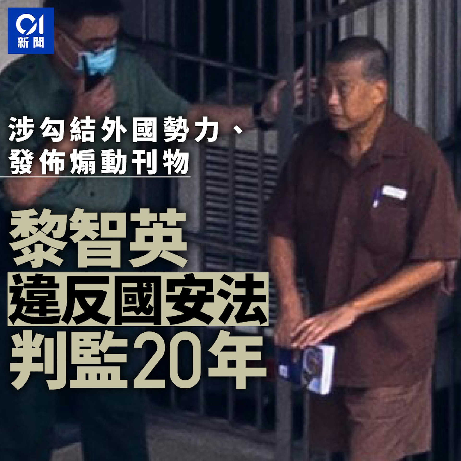 法官判刑指,黎就串謀煽動罪以判囚21個月為量刑起點,兩項串謀勾結罪以15年為量刑起點,因黎是案中幕後主腦和推動者,故此將其量刑起點分別調高至23個月和18年。同時,法庭接納黎的高齡、健康狀況及被單獨囚禁等因素加起來,會令黎的獄中生活比其他囚犯更為艱難。法庭因此在量刑時作出扣減,就串謀煽動罪減刑一個月,就兩項串謀勾結罪,分別扣減一年。